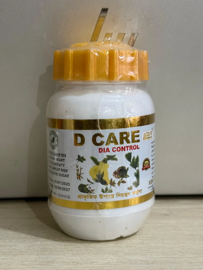 D - Care– প্রাকৃতিক উপায়ে ডায়াবেটিস নিয়ন্ত্রণ করুন! অর্জুন, জাম বীজ, সজিনা পাতা, মেহেদি পাতা, ডুমুরসহ বহু ভেষজ উপাদানে সমৃদ্ধ, যা দীর্ঘ গবেষণার মাধ্যমে তৈরি। কোনো পার্শ্বপ্রতিক্রিয়া নেই!